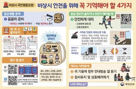 군포시 안전총괄과장은 ‘이번에 제작한 비상시 국민행동요령 안내자료는 모든 시민의 생명과 안전을 위한 최소한의 장치이자 중요한 출발점’이라며 “앞으로도 시민 모두가 비상시에도 신속하고 안전하게 대처할 수 있도록 다양한 방안을 추진해 나가겠다”고 전했다.