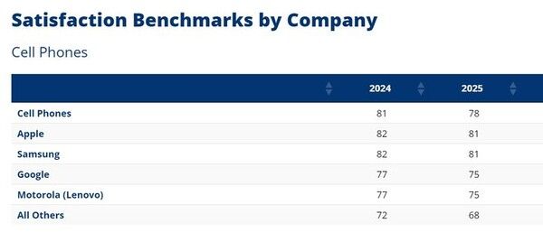 뉴시스 보도에 따르면, 22일 ACSI에 따르면 삼성전자는 올해 고객 만족도 지표 전체 스마트폰 부문에서 종합 만족도 81점을 기록해 애플과 공동 1위를 차지했다.
