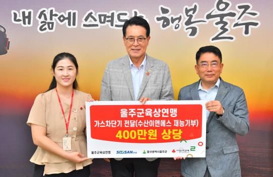 [파이낸셜경제=김영란 기자] 울주군 육상연맹과 수산이앤에스 한마음봉사단이 22일 울주군청 소회의실에서 가스 안전 취약세대를 위해 400만원 상당의 가스타이머 차단기를 전달했다.