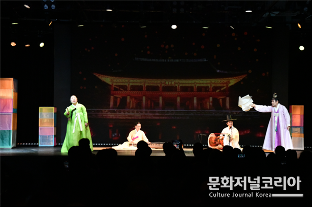 신영희 보유자는 '춘향가'의 한 대목 ‘사랑가’를 절절한 목소리로 들려주었고, 채상묵 보유자는 정제된 동작과 강렬한 에너지로 관객의 시선을 사로잡았다. 이재화 보유자는 무게감 있는 거문고 선율로 한국 전통음악의 깊이를 선보였다. 공연의 하이라이트로 세 명인이 함께 꾸민 가무악(歌舞樂) 합동무대가 펼쳐져 전 세계 관람객들에게 감동을 선사했다.