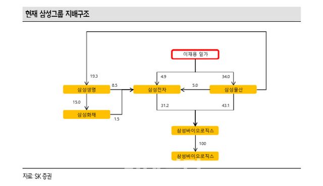 삼성바이오로직스는 그룹 차원의 구조개편에 선을 그었으나 이번 인적 분할로 향후 삼성물산(028260)이 삼성 금융계열사가 보유한 삼성전자 지분을 확보할 여력이 생길 것이란 분석이 나온다.