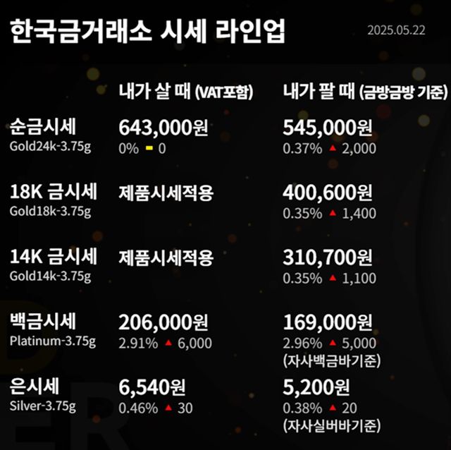 순금(24K) : 매입가 64만 3000원 / 매도가 54만 5000원