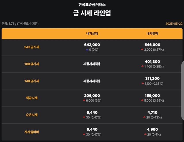 순금(24K) : 매입가 63만 7000원 / 매도가 55만 2000원