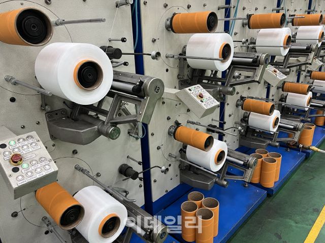 1공장에 들어서자 후끈한 열기가 느껴진다. 고밀도 폴리에틸렌(HDPE)을 250도 고온에서 녹여 국수처럼 실을 뽑아내는 방사 공정이 진행되고 있어서다.