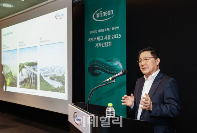 인피니언은 22일 서울 코엑스에서 ‘옥토버테크 2025 서울’ 기자간담회를 열고 이같이 소개했다. 인피니언은 세계 차량용 반도체 시장에서 5년 연속 점유율 1위를 차지한 기업이다. 차량용 전력반도체와 마이크로컨트롤러유닛(MCU), 센서반도체 등에서 두각을 나타내고 있다. 매년 미국 실리콘밸리, 일본 도쿄, 중국 상해 등을 순회하며 옥토버테크를 개최하고 있다.