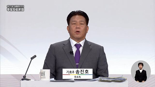 [일요시사 취재2팀] 박정원 기자 = 대통령선거 후보자 TV 토론회에 등장한 송진호 무소속 후보(기호 8번)가 ‘전과 17범’이라는 사실이 뒤늦게 화제가 되고 있다.