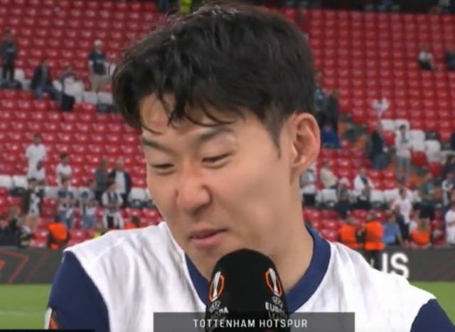 손흥민(토트넘)이 전에 볼 수 없던 솔직한 표정으로 우승 인터뷰를 했다.