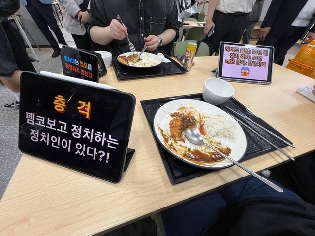이 후보가 학생들과 마주 앉아 밥을 먹는 사진도 있었지만, 특히 눈에 띈 건 또 다른 테이블이었다.