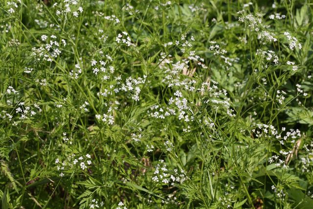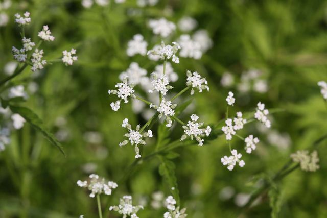 5월 하순부터 자잘한 흰색 꽃이 줄기와 가지 끝에 겹우산꽃차례로 핀다. 겹우산꽃차례는 산형꽃차례가 여러 개 모여서 이루어진 꽃차례입니다. 꽃줄기 끝에 여러 개의 작은 산형꽃차례가 더 모여서 우산 모양을 이루는 형태다. 미나리, 당근 등이 겹산형꽃차례를 가진 대표적인 식물이다.