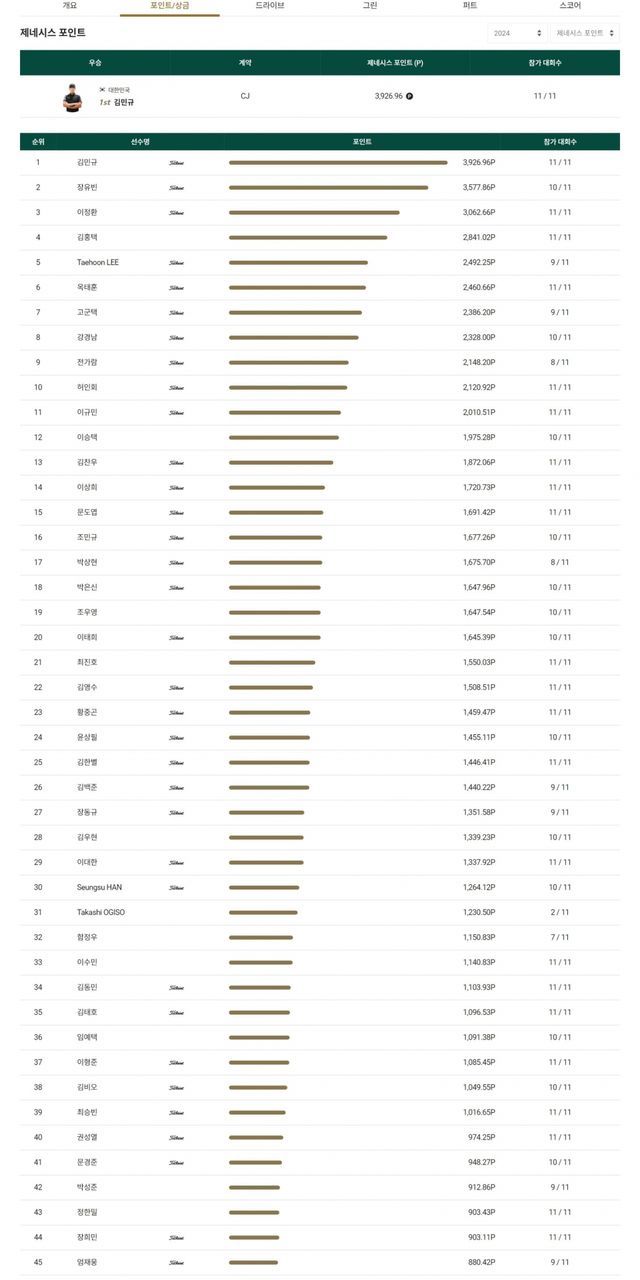 ■제네시스 포인트(코오롱 제67회 한국오픈골프선수권대회 종료)