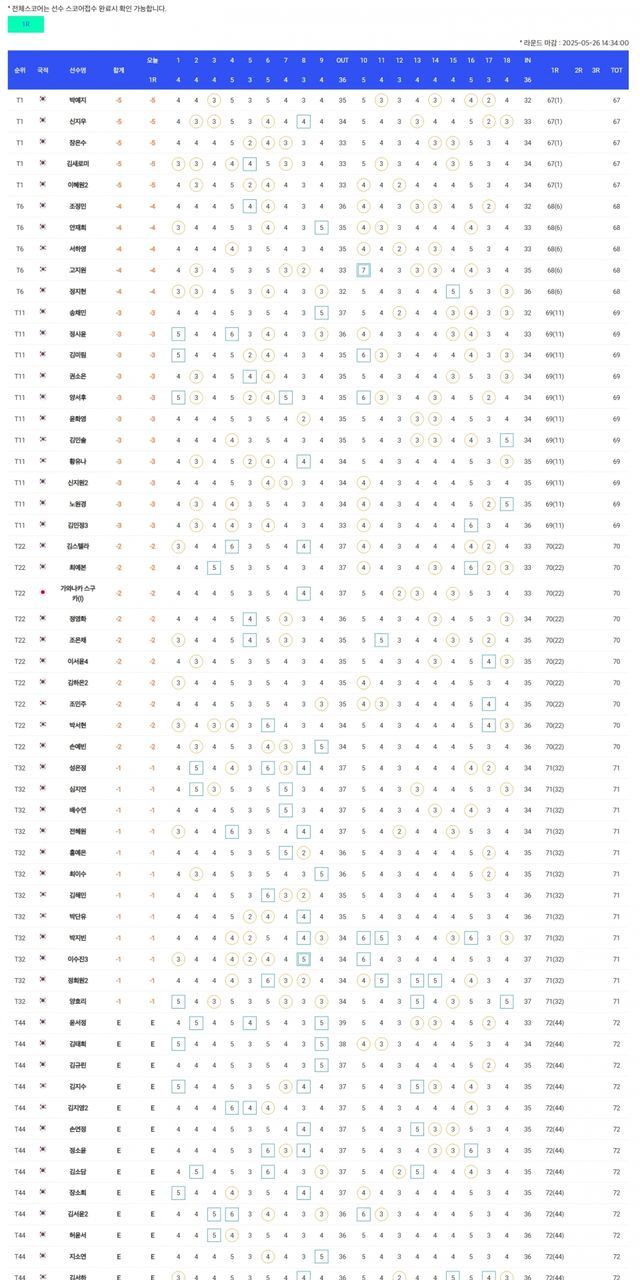 ▲군산CC 드림투어 6차전 1라운드 순위