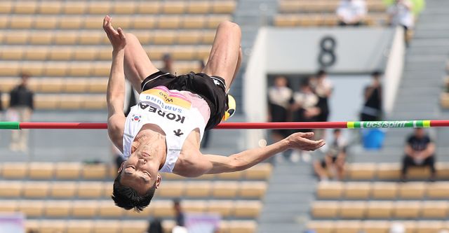 우상혁은 27일 경북 구미시민운동장에서 열린 대회 남자 높이뛰기 예선에서 2m15를 1차 시기에 넘었다.