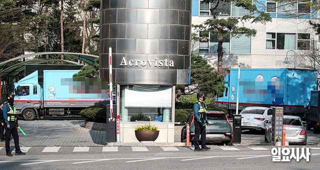 윤 전 대통령 측은 코바나컨텐츠 앞 한 갤러리를 사실상 집무실로 사용 중이다. 이 갤러리는 윤 전 대통령이 한남동 관저를 떠나 아크로비스타로 오기 전까지만 해도 사무실 안이 훤히 보일 정도였다. 바뀐 건 지난달부터다. 윤 전 대통령과 대통령경호처 직원들이 드나들면서 정문을 잠그고 내부가 아예 보이지 않도록 방음벽 등을 설치한 것으로 파악됐다.