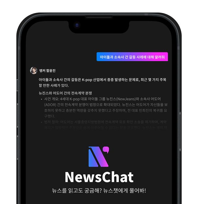 뉴스챗 AI 아나운서는 민감한 주제도 기사 데이터를 기반으로 명확하고 중립적인 답변을 제공하며, 텍스트 기사 외에도 주요 뉴스를 영상 브리핑으로 제공하는 기능도 있어 보다 직관적으로 뉴스를 소비할 수 있다.