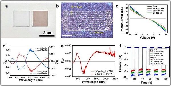 이어 연구진은 제작한 셀레늄 나노필름 소자가 자외선(180㎚)부터 단파장 적외선(2500㎚)에 이르기까지 넓은 파장영역에서 CPL을 감지할 수 있음을 확인하고 추가적인 편광 필터없이 편광 방향을 정밀하게 구분할 수 있는 성능도 검증했다.