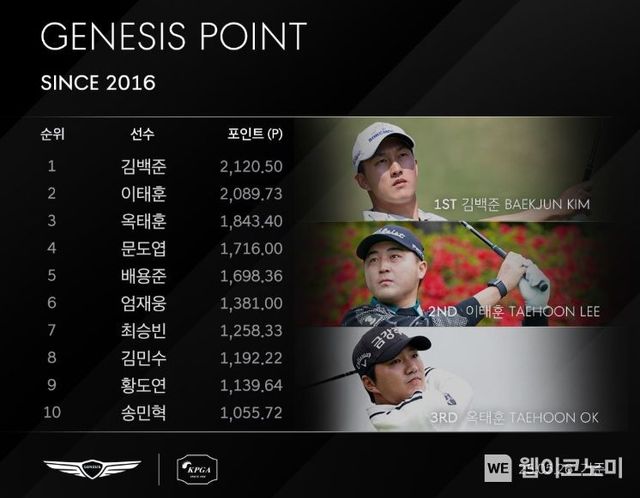 한편 시즌 종료 후 제네시스 포인트 1위로 ‘제네시스 대상’을 차지한 선수에게는 보너스 상금 2억 원과 함께 제네시스 차량, KPGA 투어 시드 5년과 PGA투어 큐스쿨 최종전 직행 자격, DP월드투어 시드 1년이 주어진다.