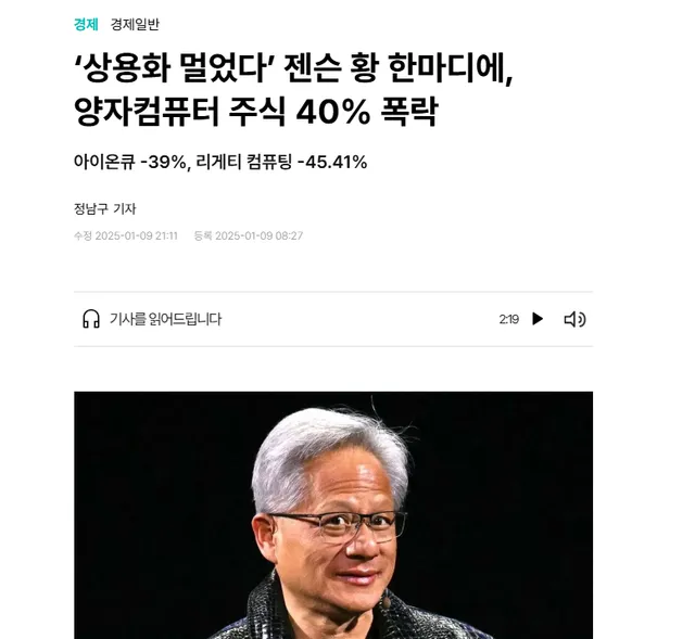 젠슨황 인터뷰로 나락갔던 양자컴 주식들.
