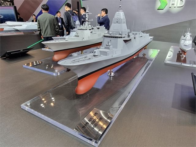 HD현대중공업의 한국형 차기 구축함(KDDX) 모형 [사진=주주경제신문 박소연 기자]