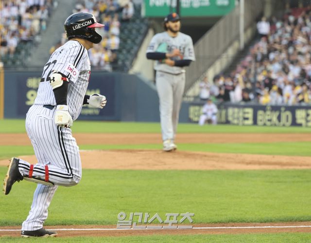 2025 KB0리그 프로야구 LG트윈스와 한화이글스의 경기가 28일 오후 서울 잠실야구장에서 열렸다. 3회말 1사 김현수가 폰세에게 솔로홈런을 치고 베이스를 돌고 있다. 잠실=김민규 기자 mgkim1@edaily.co.kr