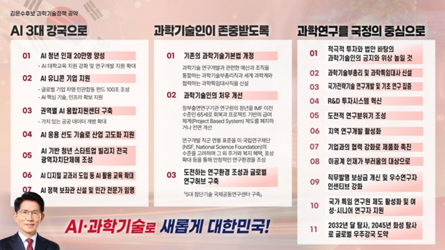 인재 양성 부문에서도 실효성에 의문이 제기된다. 이재명 후보는 AI 중심 대학 확대, 해외 인재 유치를 위한 인건비 지원을 공약했으며, 김문수 후보도 유사한 입장을 보였다. 하지만 학계에서는 대선 후보 모두 AI 고급인력 유출을 막을 수 있는 구조적 대책이 빠져 있다는 비판이 나온다.