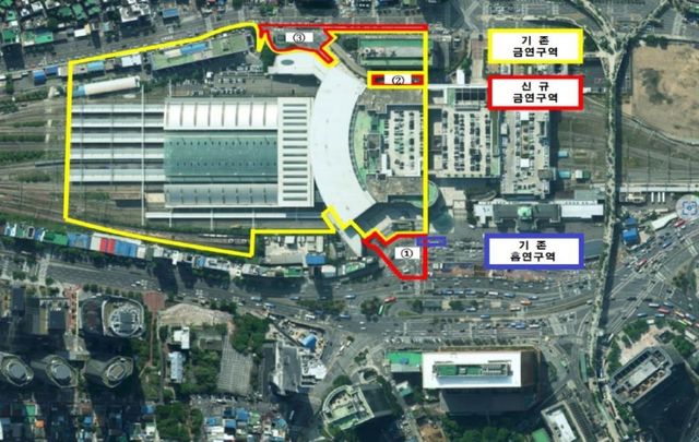 이번에 새롭게 금연구역으로 지정된 곳은 ▲서울역 전면 지하철 1번 출구 앞 광장 및 인접부지 약 2340㎡ ▲서울역 서부 지하철 3번 출구 앞 약 500㎡ ▲서울역 서부 지하철 15번 출구 앞 광장 및 인접부지 약 3730㎡로 총 6570㎡에 달한다. 기존에는 서울역사와 출입구 인접부지만 금연구역에 포함됐다.