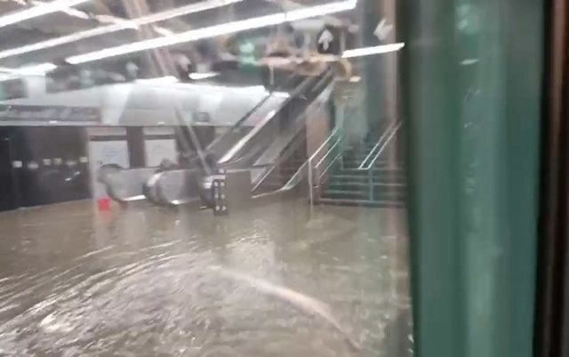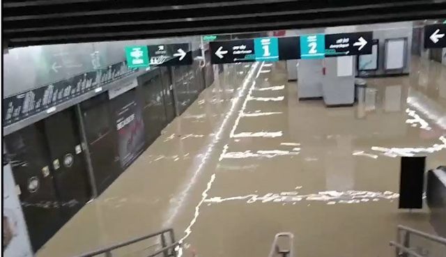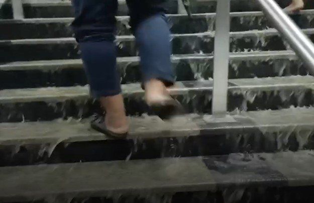 소셜미디어에 공유된 영상을 보면 출퇴근 시간 지하철에서 내리려던 승객들은 문이 열리자 발이 얼어붙었다. 천장과 계단에서 물이 콸콸 쏟아지고, 바닥은 물에 잠겼다. 승객들은 어디로 나가야 할지 몰라 우왕좌왕 하는 모습이다.