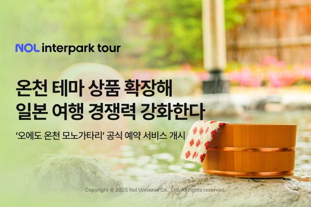 NOL 인터파크투어는 최근 국내 여행 플랫폼 최초로 오에도 온천 모노가타리 그룹과 공식 파트너 계약을 체결했다. 오에도 온천 모노가타리 그룹은 타오야(올인클루시브 온천리조트)ㆍ프리미엄ㆍ베이직ㆍ왕왕리조트 등 4개의 브랜드와 시리즈를 운영하며 일본 전역 69개 숙소를 통해 지역 특색을 살린 체류형 온천 여행 경험을 제공하는 일본 대표 온천 숙박 체인 그룹이다. 이번 직계약 협업으로 NOL 인터파크투어는 고품질의 온천 테마 상품 라인업과 국내 고객 맞춤형 혜택을 동시에 확보하게 됐다.
