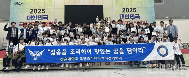 [한국대학신문 정수정 기자] 청운대학교(총장 정윤)는 호텔조리베이커리경영학과 재학생 73명이 지난 23일부터 25일까지 서울 양재동 aT센터에서 열린 ‘2025 대한민국 국제요리&제과 경연대회’에 참가해 전 부문을 석권하는 성과를 거뒀다고 29일 밝혔다.