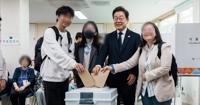 청년들과 사전투표를 하는 이재명 더불어민주당 대선후보 / 뉴스1