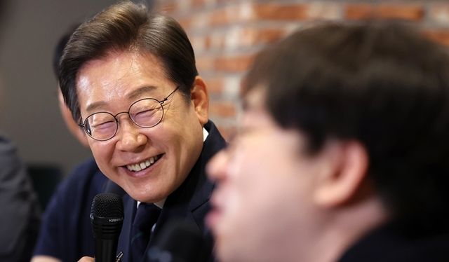 이재명 후보는 이 말을 들었는지 소리가 난 쪽을 향해 미소를 지었다.