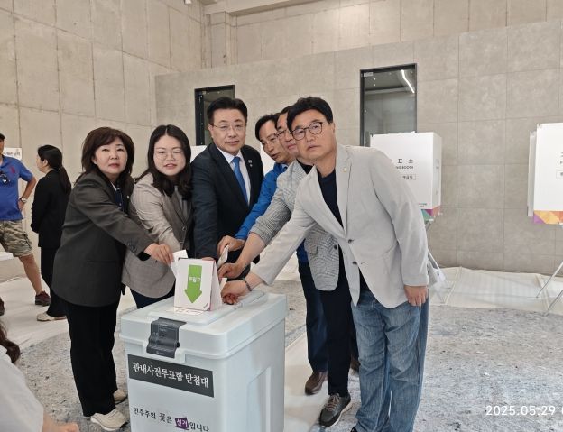 [와이뉴스] 안태준 더불어민주당 광주시을 국회의원은 제21대 대선 사전투표가 시작된 29일(목) 오전, 신현동 행정복지센터에 마련된 사전투표소에서 지역의 시·도의원들과 함께 투표를 마쳤다.