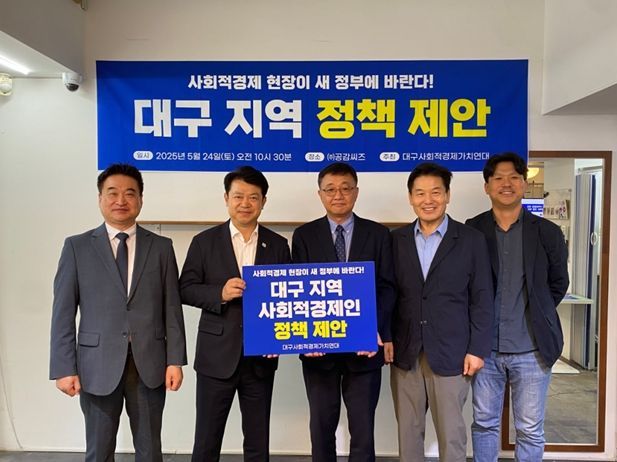 정책제안 내용에는 ▲대구를 지역순환경제 실현을 위한 시범사업 도시로 지정 ▲대구 사회연대경제 혁신거점공간 구축 ▲지역 사회적금융 기반 및 생태계 강화 ▲지역기반 사회연대경제 전달체계 복원 ▲지역 맞춤형 창업 임팩트 모델 육성 등이 담겼다.