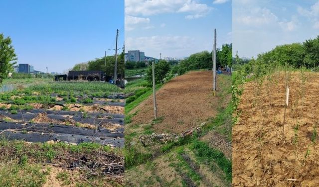 충훈대교 인근에 있는 해당 부지는 오랫동안 경작지로 방치돼왔고, 개인 점유자가 무단으로 농막과 축사까지 설치해 도시미관이 훼손되는 상황이었다.