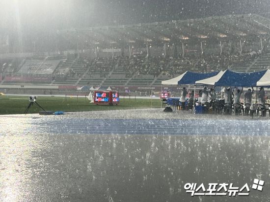 (엑스포츠뉴스 구미, 김정현 기자) 폭우로 연기됐던 우상혁(용인시청)의 남자높이뛰기 결선이 또다시 폭우로 잠시 미뤄졌다.