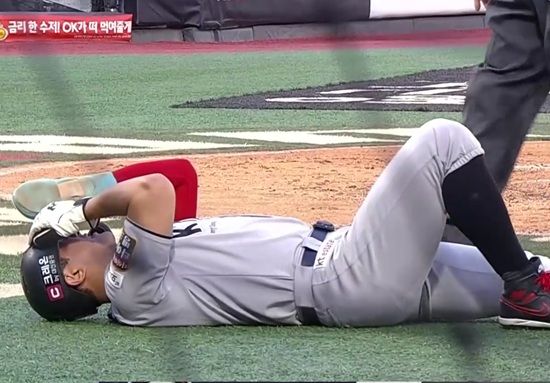 하지만, 비디오 판독 판정 번복이 결과적으로 부상 불운까지 이어졌다. 후속타자 배정대의 볼넷으로 2루로 진루한 황재균은 2사 뒤 로하스의 중전 안타 때 3루를 돌아 홈으로 쇄도했다. 이 과정에서 황재균은 다리를 부여잡고 고통스러운 표정 속에 천천히 홈을 밟았다.