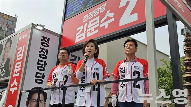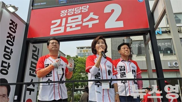 국민의힘 나경원 공동선거대책위원장이 김문수 후보 지지를 호소하고 있다./사진=뉴스영
