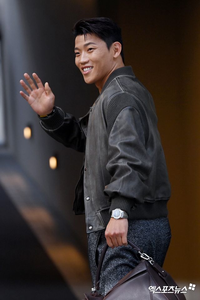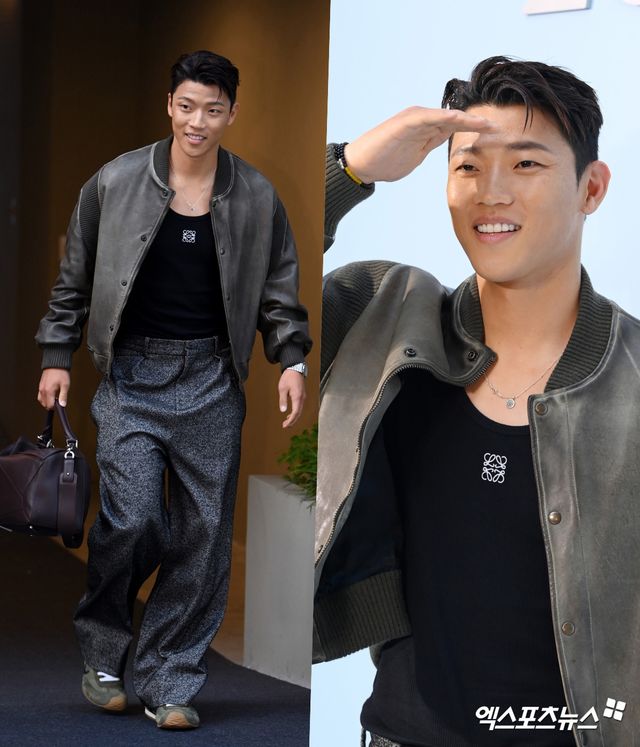 이날 행사에 참석한 축구선수 황희찬(울버햄튼)이 포토타임을 갖고 있다.