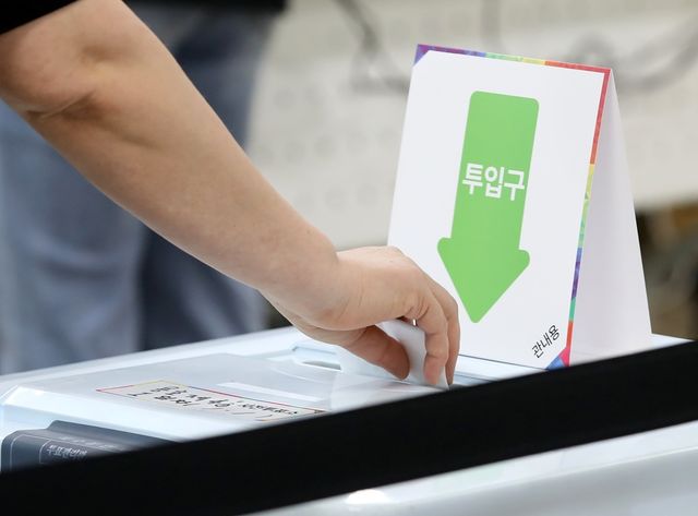 제21대 대통령선거 사전투표 첫날인 29일 부산 남구 용호4동주민센터 마련된 사전투표소에서 유권자가 투표를 하고 있다. / 뉴스1