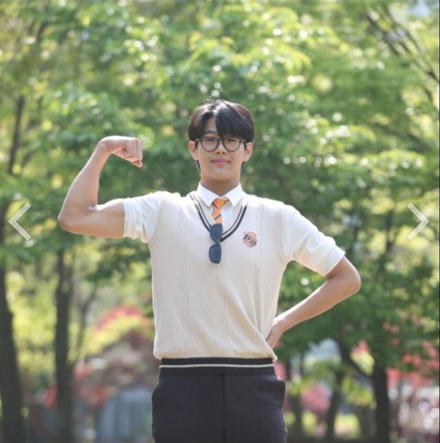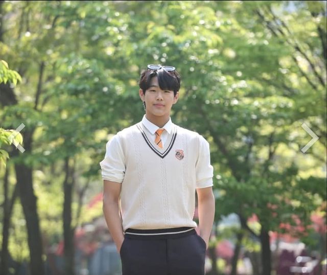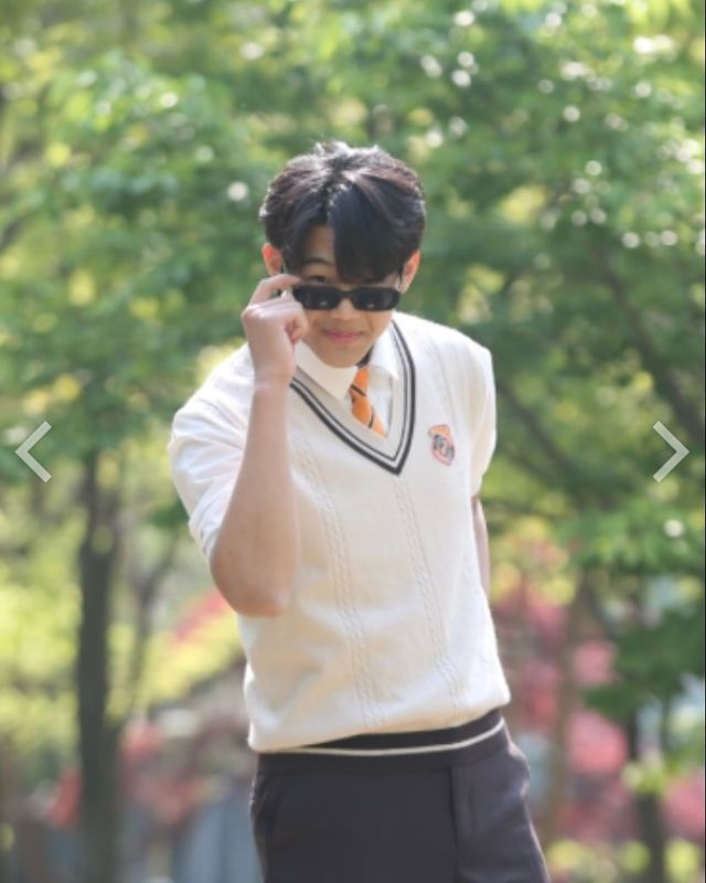 공개된 사진 속에는 교정에서 촬영된 준수의 모습이 담겼다. 단정한 니트 베스트와 주황색 넥타이, 검정 바지를 착용한 준수는 깔끔하면서도 밝은 분위기를 풍겼다.