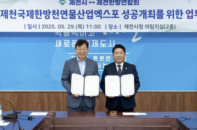 [파이낸셜경제=김영란 기자] 제천시는 5월 29일 시청 의림지실에서 제천한방연합회와 2025 제천국제한방천연물산업엑스포의 성공적인 개최를 위한 업무협약을 체결했다.