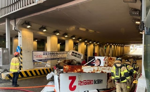 30일 소방당국과 뉴스1에 따르면 국민의힘 유세 차량은 이날 오전 9시 12분쯤 서울 용산구 갈월동 지하차도에서 용산역 방향으로 나가려다 오른쪽으로 기울어 전복됐다.