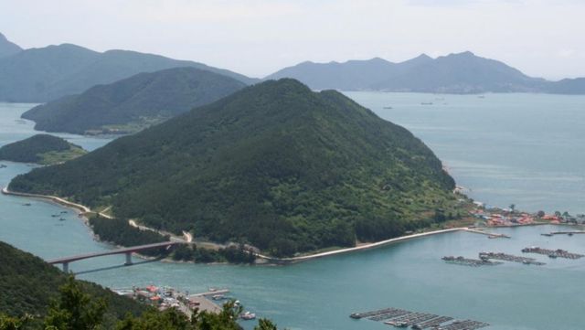경남 통영시 한산도와 추봉도를 연결하는 길이 400m의 '추봉교'.(다리 왼쪽이 한산도, 오른쪽에 추봉도) / 연합뉴스