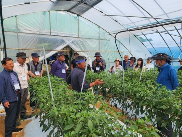 | ▲ 예비 귀농들이 전문 영농기술 현장 교육을 받는 모습 |