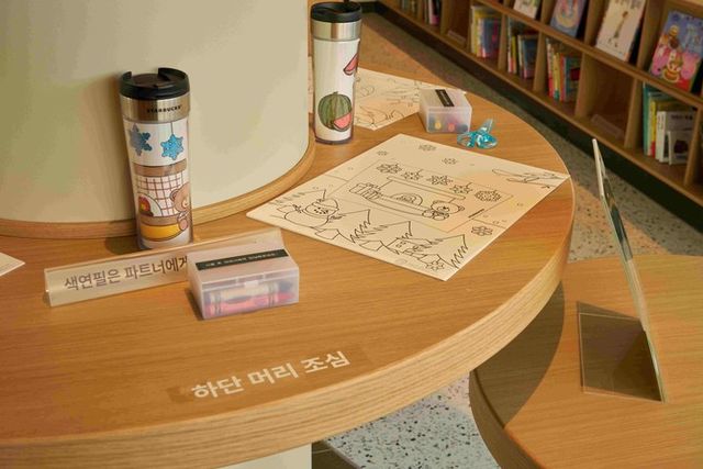 매장에 비치된 색칠 도구와 컬러링 속지는 고객 요청 시 파트너를 통해 제공받을 수 있으며, 크리에이티브 텀블러는 매장에서 별도 구매 가능하다.