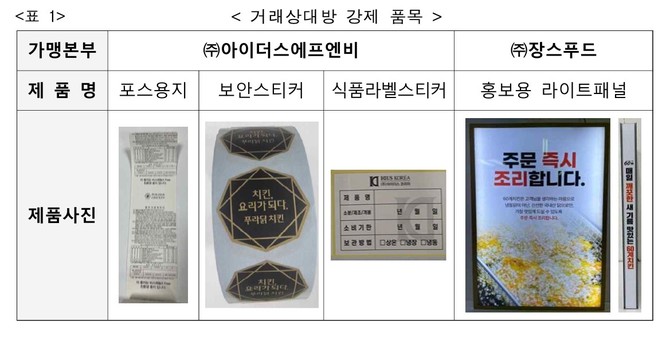 30일 공정위가 밝힌 바에 따르면, 푸라닭을 운영하고 있는 '아이더스에프앤비'는 가맹점주로 하여금 2018년 7월부터 2024년 2월까지 △영수증 인쇄용 포스용지 △치킨박스 봉인용 보안스티커 △식자재 유통기한·보관방법 표시용 식품라벨스티커 등을 자신으로부터만 구매하도록 강제했다.