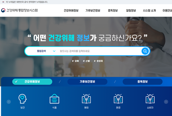 건강을 해치는 모든 위해정보들을 한눈에 볼 수 있는 통합사이트가 열렸다.