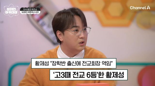 기계, 생명공학, 과학, 언어, 역사 등 각 분야에서 내로라하는 연예인 ‘브레인’들이 출연한 가운데, 황제성도 ‘반전 브레인’으로 당당히 합류해 방송 전부터 이목이 집중됐다. 황제성이 우수한 성적만 들어 갈수 있는 ‘장학반’ 출신에 전교회장 역임은 물론, 대학수학능력시험에서 수리영역 1등급 성적까지 보유했다고 밝힌 것.