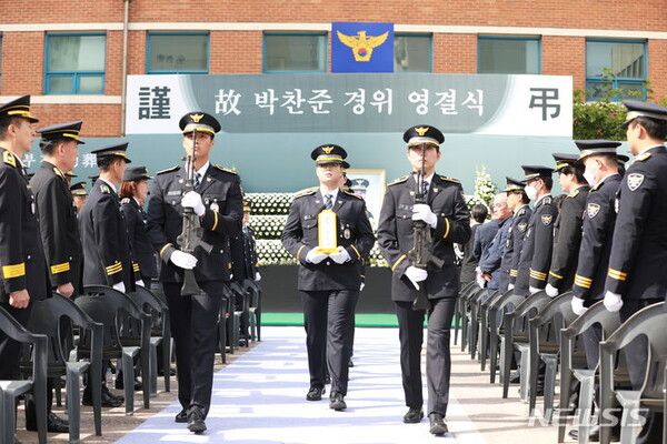 박 경위는 당일 오전 5시 20분께 팔각정 2층에서 발생한 화재신고를 받고 현장을 조사하던 중 2.5m 아래로 추락해 숨졌다.