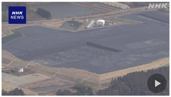 “재이용 논란” 후쿠시마 오염토가 쌓인 중간저장시설 전경/NHK 보도분 캡쳐(포인트경제)