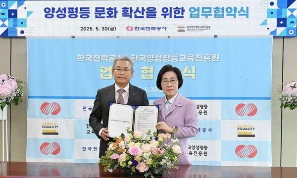 뉴시스 보도에 따르면, 한전은 30일 서울 아트센터에서 김동철 한전 사장과 김삼화 한국양성평등교육진흥원(양평원) 원장이 참석한 가운데 양평원과 '양성평등 문화 정착과 폭력 예방 교육 콘텐츠 이용 활성화'를 위한 업무협약을 체결했다고 밝혔다.